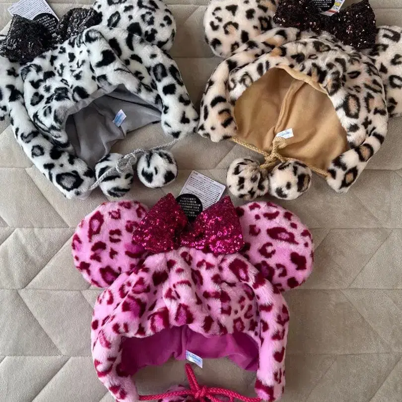택 포함 미사용 새상품 미니 마우스 레오파드 무늬 모자 3세트