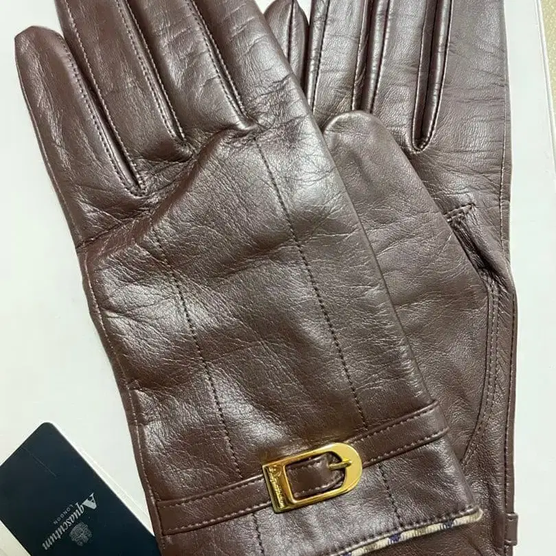브라운 가죽 장갑 금장 장식 포함 aquascutum 20cm