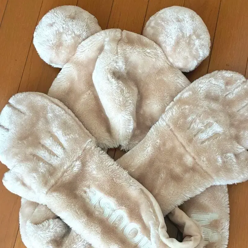 디즈니 머플러캡 미키 머플러 장갑 포함 팬캡 베이지