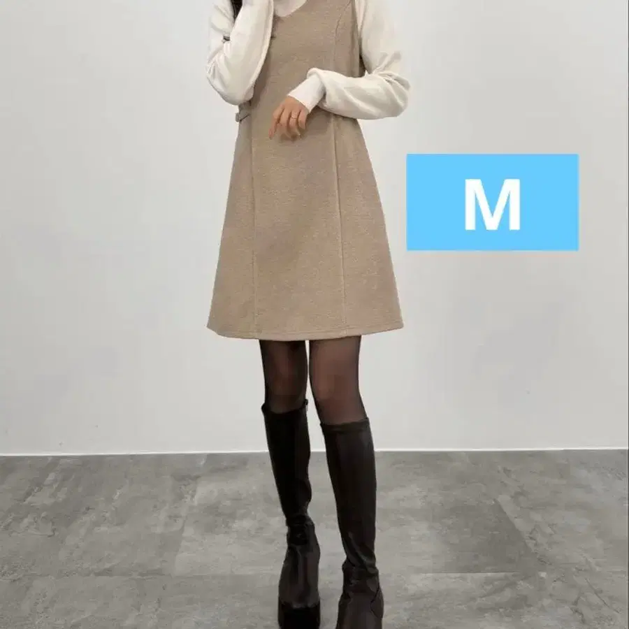 [ 새상품 M 사이즈 ] CENEA V넥 미니 오버롤 스커트 베이지