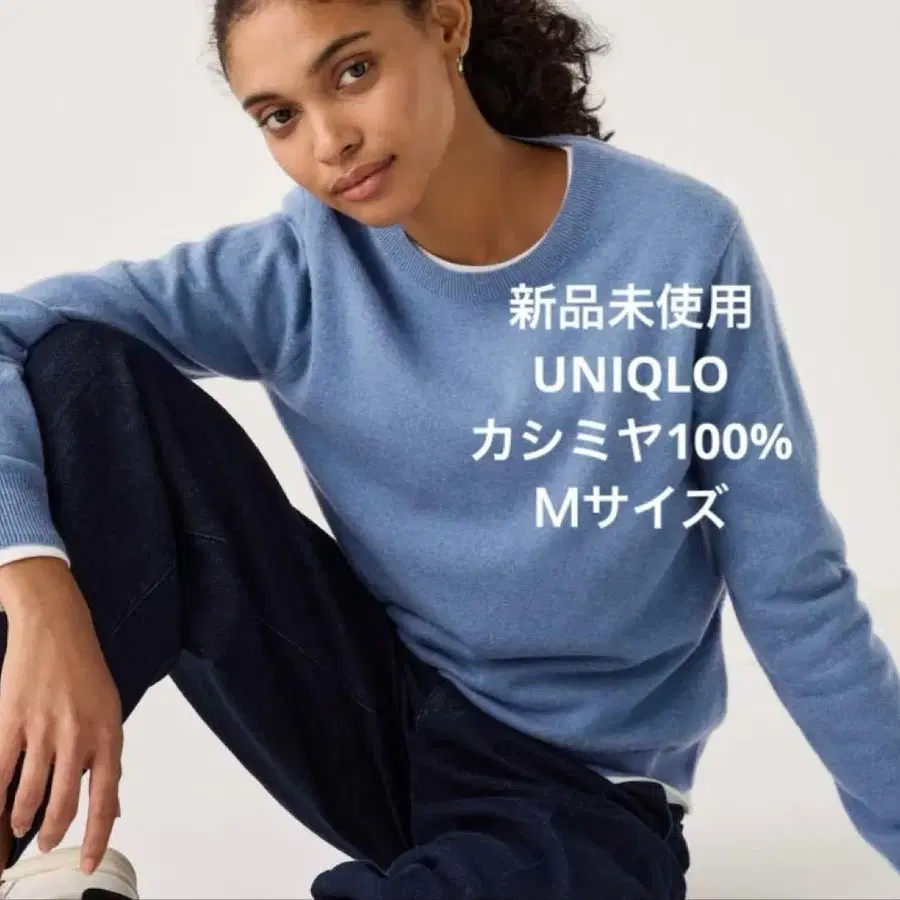 미사용 새상품 유니클로 캐시미어 크루넥 스웨터 블루 M