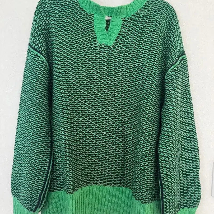 nikoand 슬릿넥 자카드 빅 풀오버 니트 그린 F