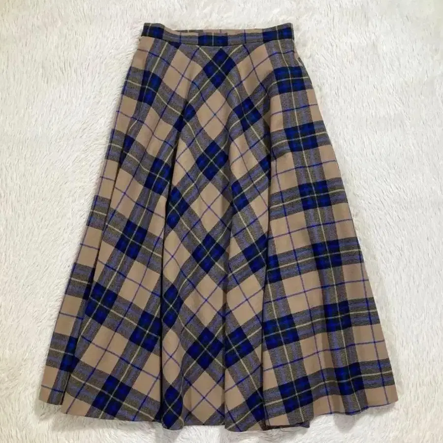 컨디션 최상 유나이티드 애로우즈 플레어 롱 스커트 울 혼방 체크