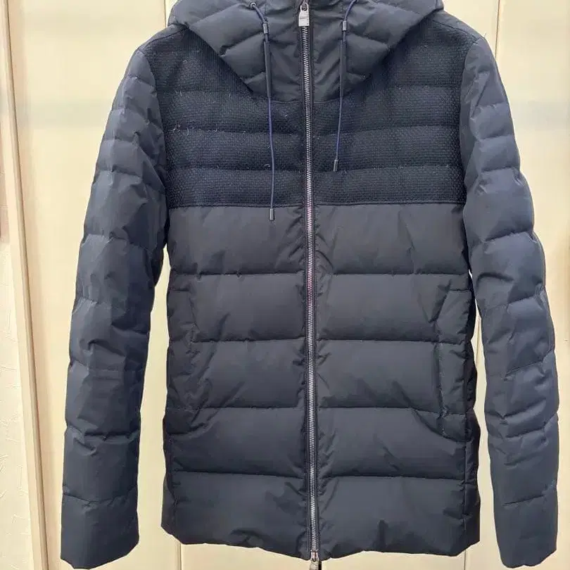 무슈 니콜 후드 부착 다운 자켓 네이비