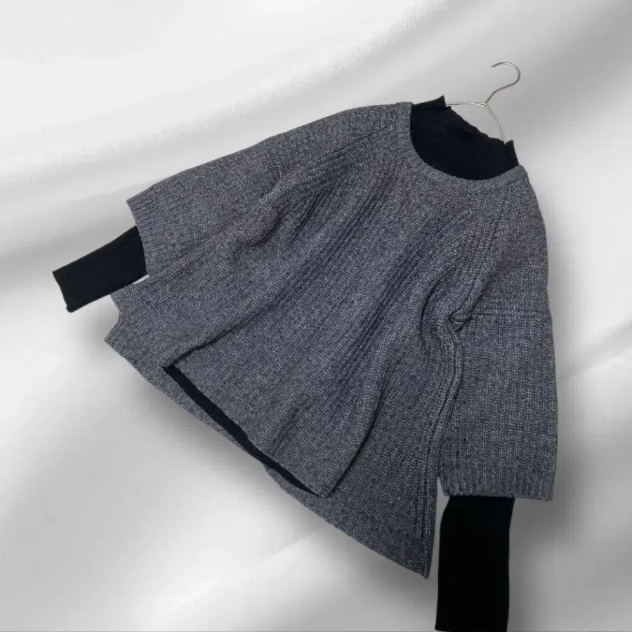 빅 사이즈! 자유구/44/플레어 니트/세탁 가능/A라인/울 블렌드
