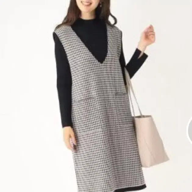 미사용 새상품 오버롤 스커트 하운드투스 L 사이즈 40 사이즈