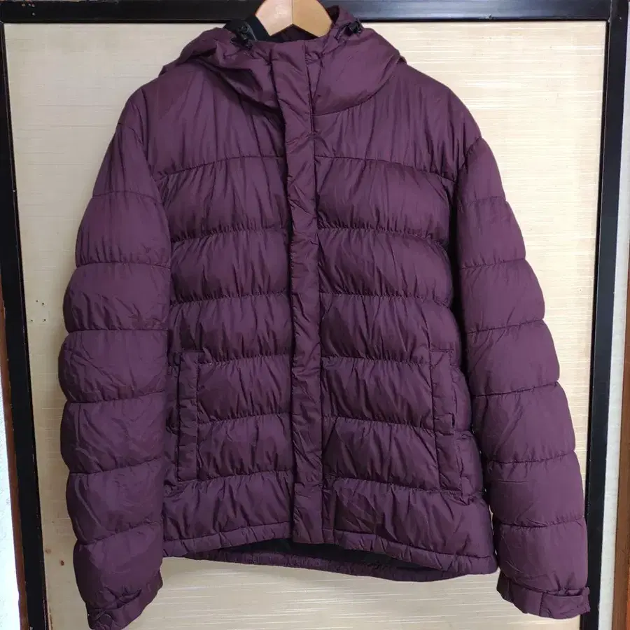 퍼플 다운 자켓 XL 후드 부착 보르도