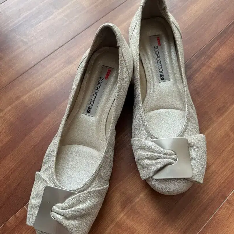 골드 무광 플레이트 장식 베이지 플랫슈즈