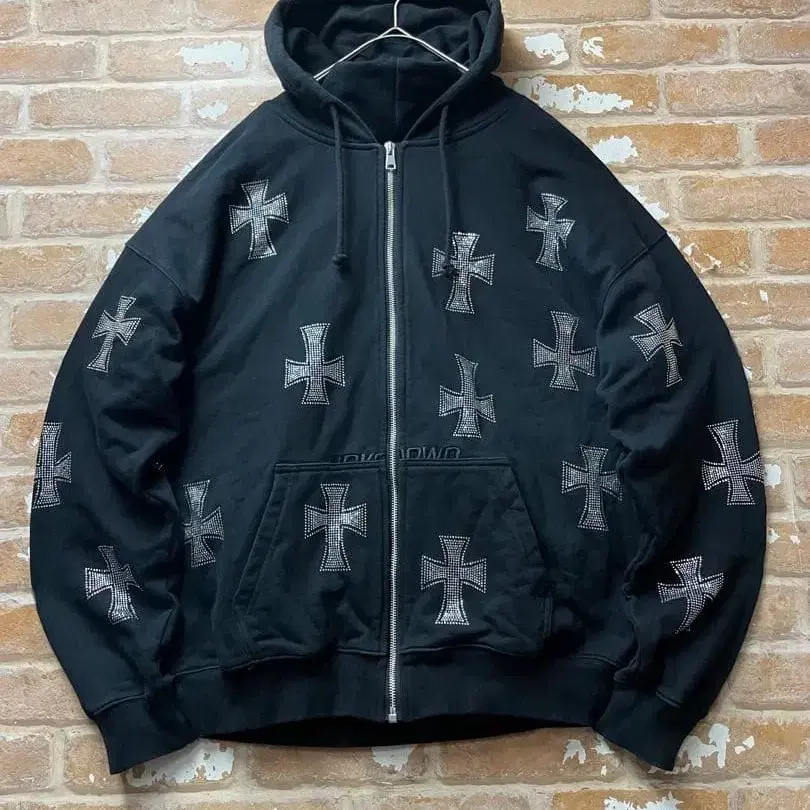 UNKNOWN LONDON 후드티 라이트스톤 블랙 지퍼 후드티 L