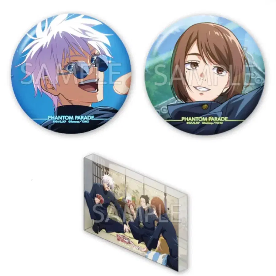 주술회전 팬파레 복권 고죠 캔뱃지 아크릴 블록 유리 여름 게토 사시스