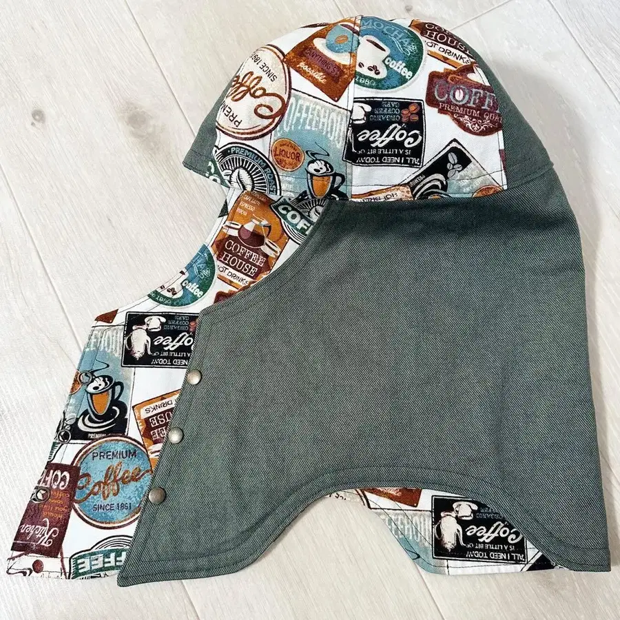 리버서블 용접 두건 No.205 커피 스티커 패턴 / 8온스 데님