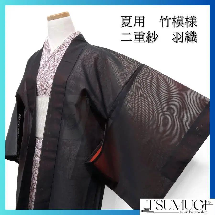 여름용 겉옷 이중 비단 대나무 잎 주홍색 블랙 기모노 072w d
