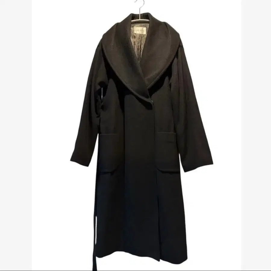 트레피니 블랙 롱 코트 숄카라 빅카라 울