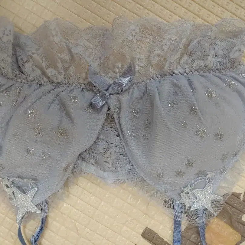 리사마리셋 라이트 블루 별 자수 프릴 룸웨어