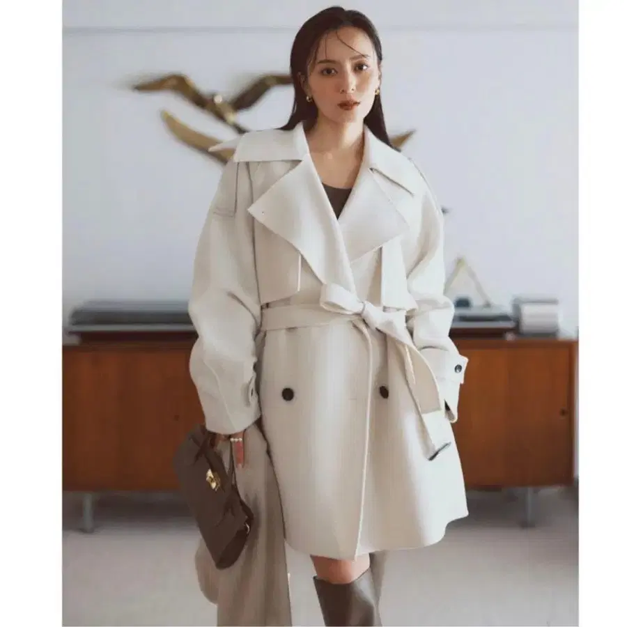 아뉴앙스 리버 울 미들 트렌치코트 화이트