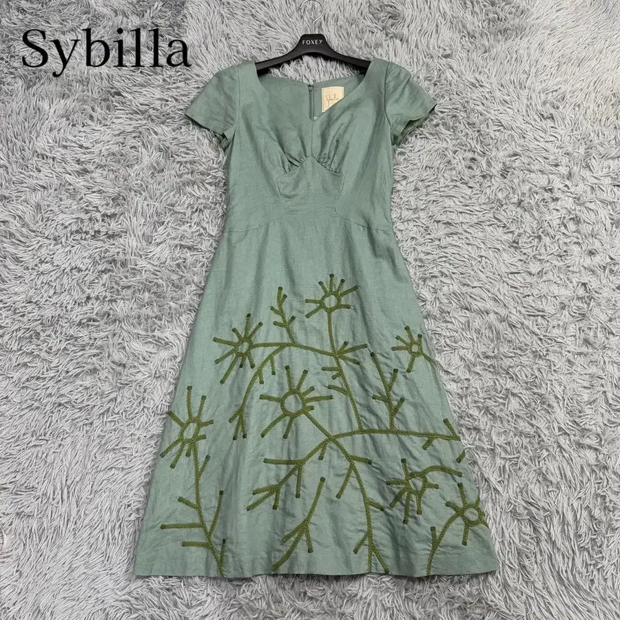 새상품급 시빌라 린넨코튼 자수 원피스 반팔 V넥 그린 M