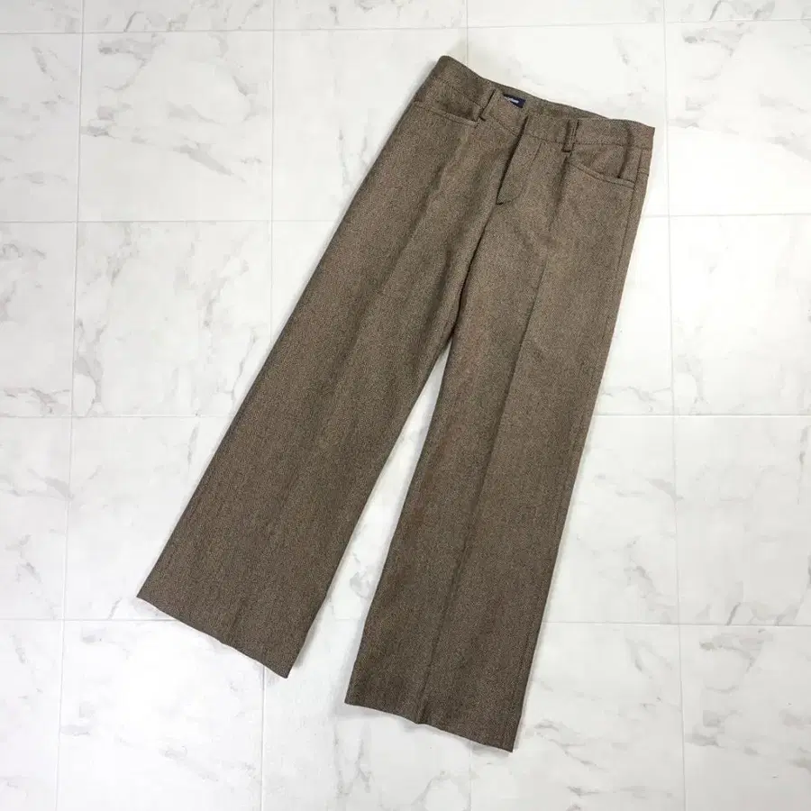 자동 번역되었어요. 원문보기새상품급 Aquascutum 아쿠아 스큐텀 헤링본 울 캐시미어 와이드 팬츠 플레어 슬랙스 여성용 브라운 색상 사이즈 8*LD36