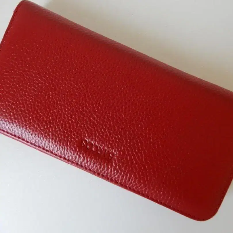 미사용품 천연 가죽 BARCOS(발코스) 장지갑 레드(금속 장식 실버)