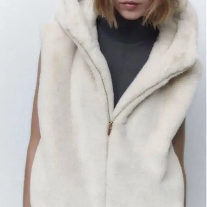 ZARA 인조 모피 후드 부착 보아 베스트