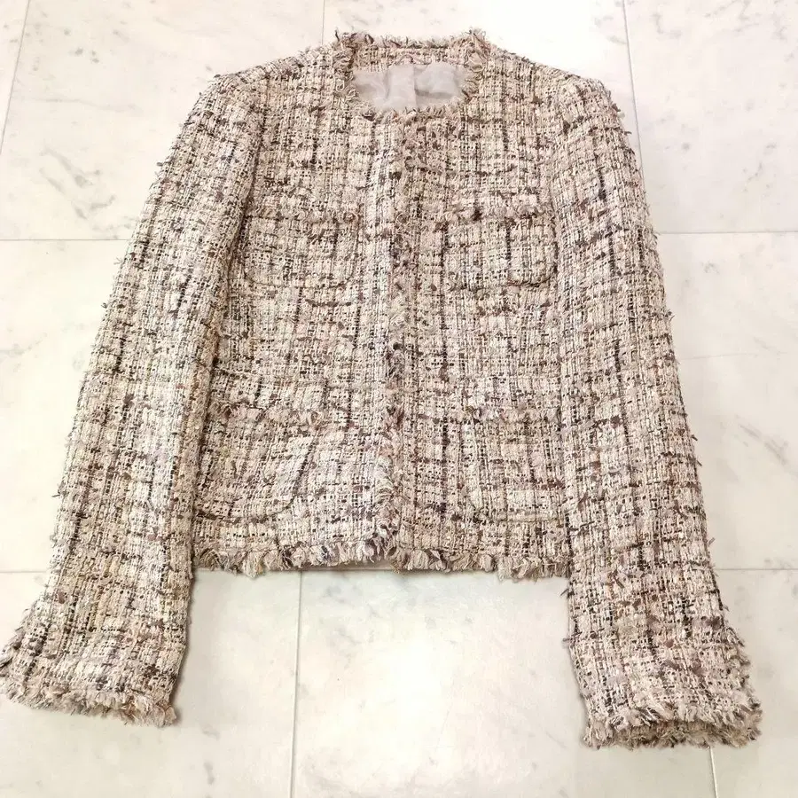 • 플라스테 믹스 트위드 노카라 자켓