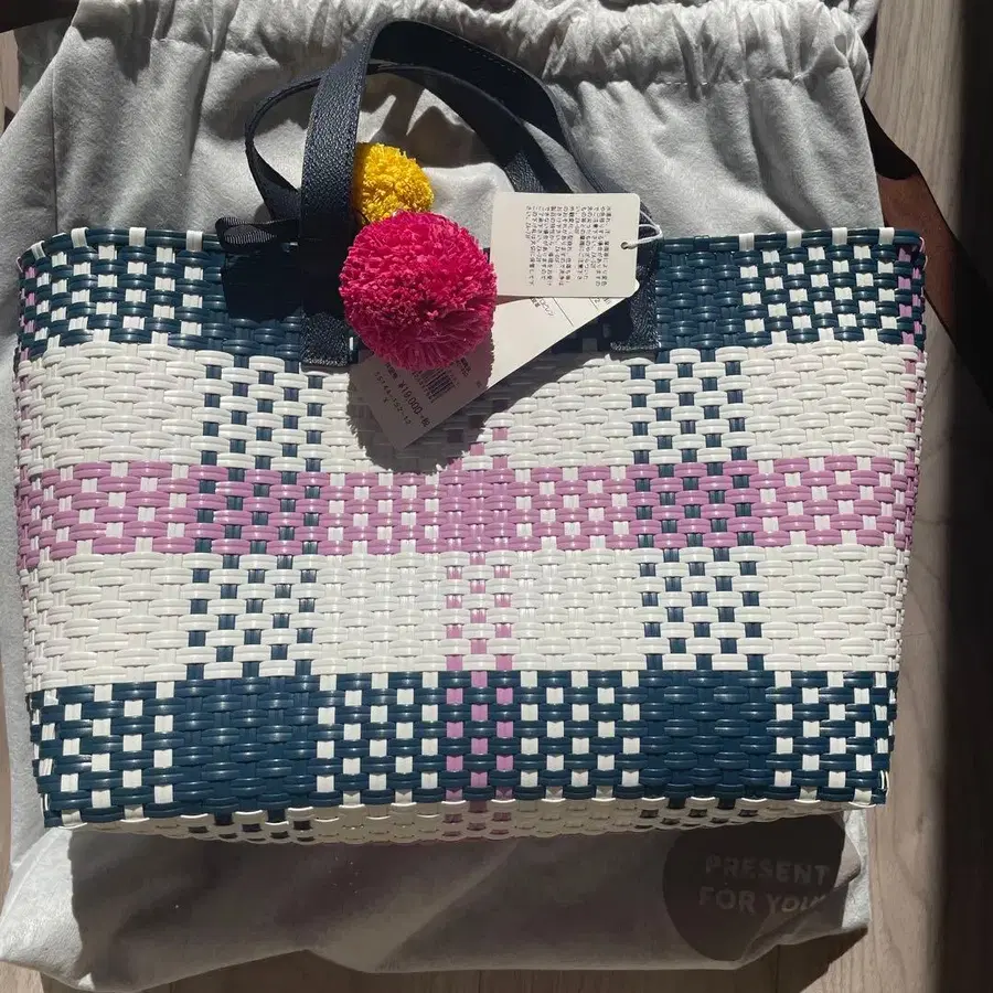 네이비 화이트 체크 무늬 바스켓백