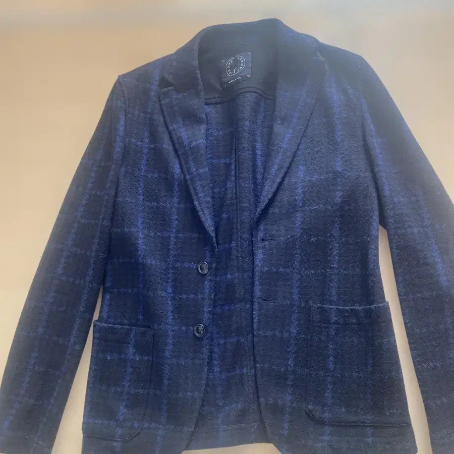 네이비 체크 무늬 테일러드 자켓 XS