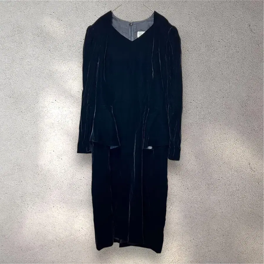 도쿄 소와르 L 블랙 V넥 원피스 어깨 패드 레트로 벨로아