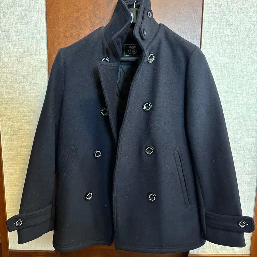 BEAMS HEART 블랙 피 코트 S