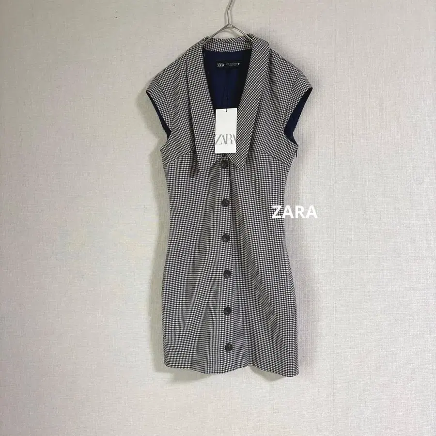 새상품급 자라 체크 무늬 미니 원피스 슬리브리스 V넥 버튼