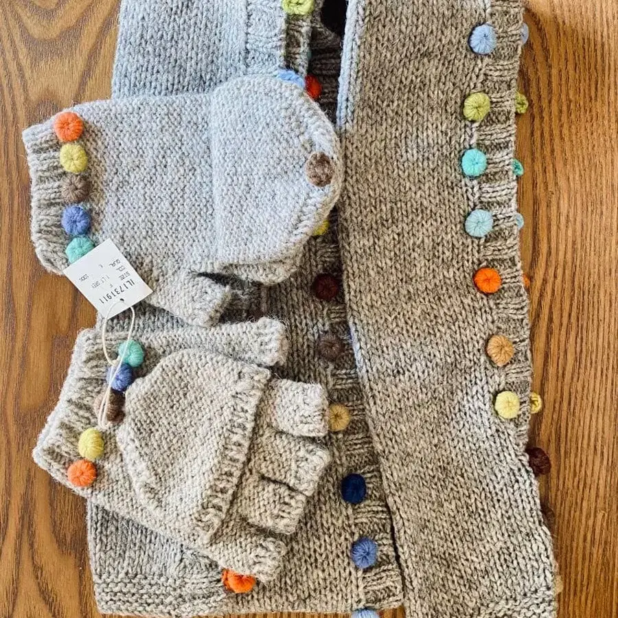 폼폼 포함 울 미튼 장갑 머플러 세트