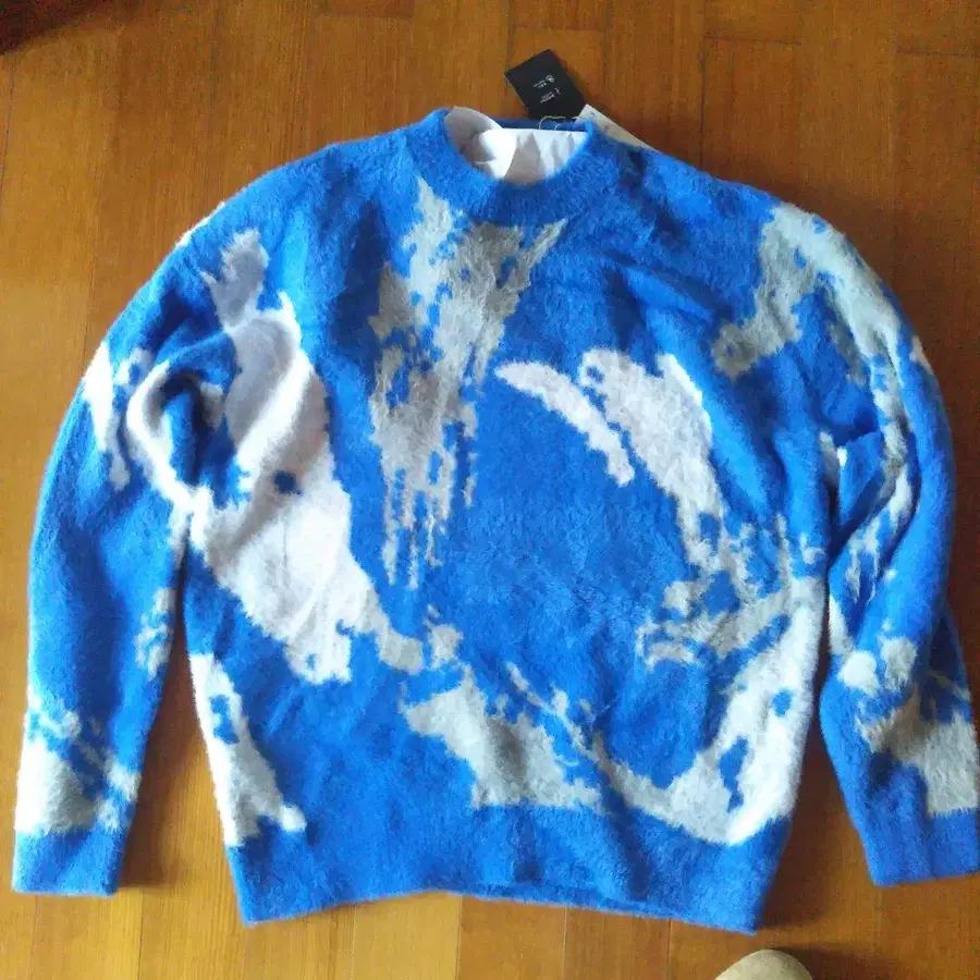 아줄바이마우지 스웨터 파랑과 화이트 패턴 F 사이즈 미착용 새상품