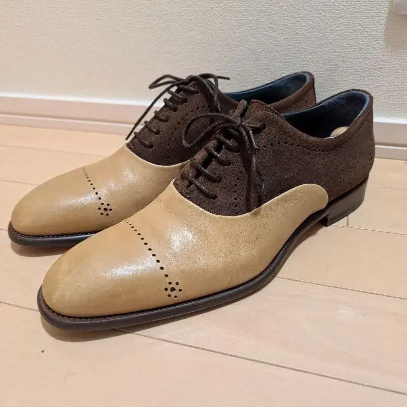 스페인산 zampiere 가죽 밑창 베이지 x 브라운 스웨이드