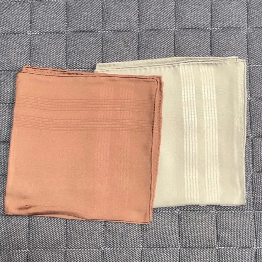 실크 스트라이프 색상 변경 브라운 그레이 포켓 치프 2장 세트