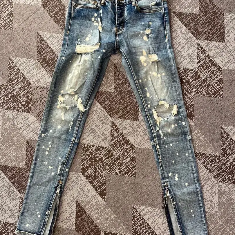 mnml 데미지 스키니 데님