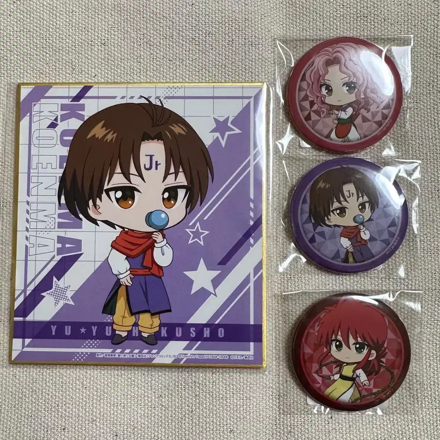 복권 크리프 유유백서 코엔마 겐카이 쿠라마 색지/캔뱃지 세트