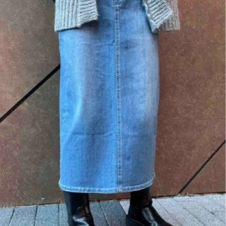 nod 세미 타이트 데님 롱 스커트 블루 XL No.635
