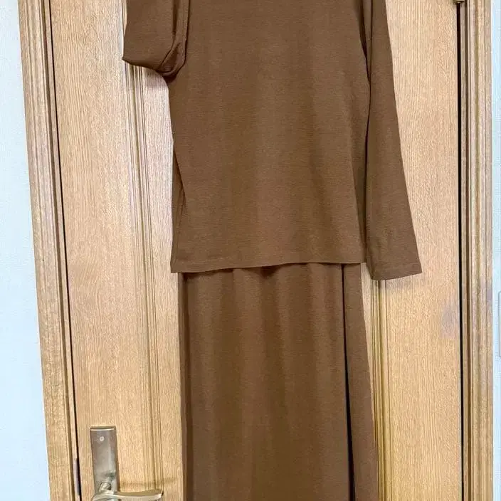 요건 레일 울 면 혼방 브라운 셋업 터틀넥