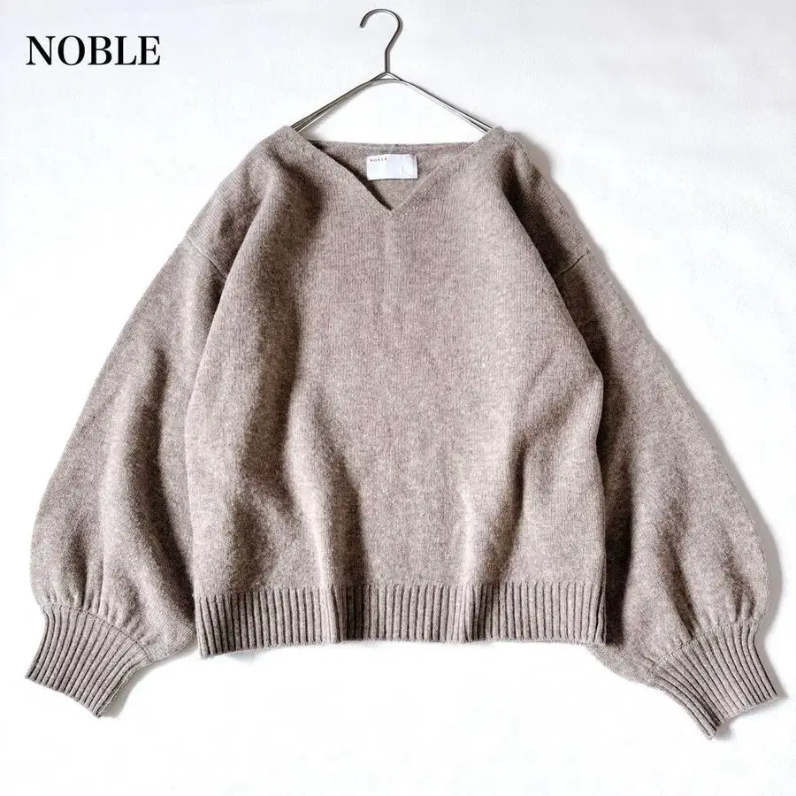 미사용급 노블 V넥 울 니트 스웨터 울 부드러운 F 사이즈