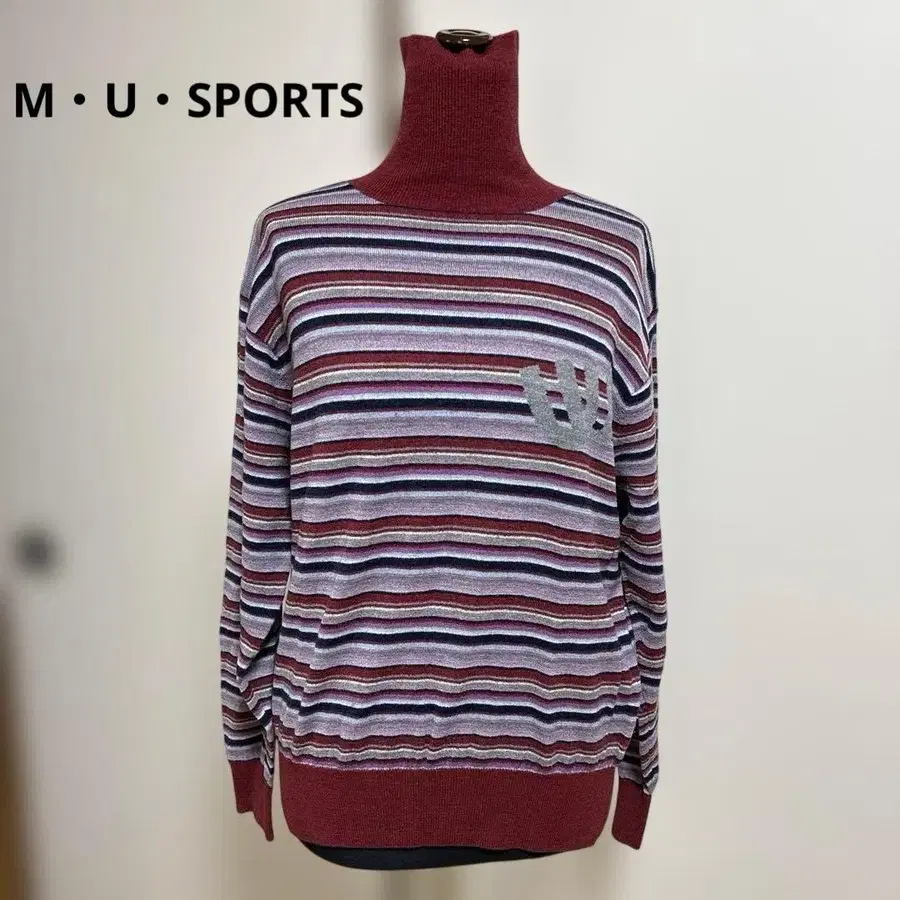 엠유스포츠 니트 스웨터 보더 터틀넥 울 40