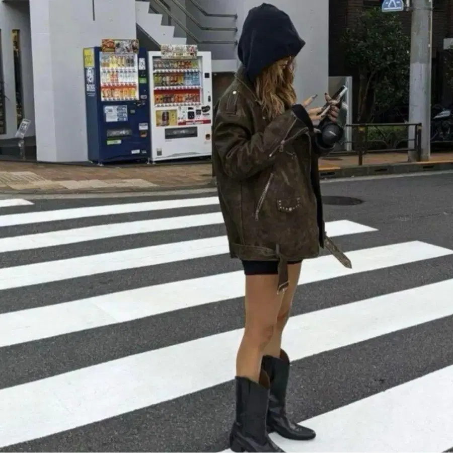 ACLENT 빈티지 가죽 오버 라이더 자켓