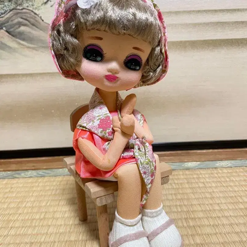 자동 번역되었어요. 원문보기할머니 댁에서 장기간 보관고에 보관되어 있었습니다. 쇼와 레트로 인형입니다. 의자에 앉아 있습니다. 작은 얼룩이 있습니다. 사진으로 확인해 주세요.
