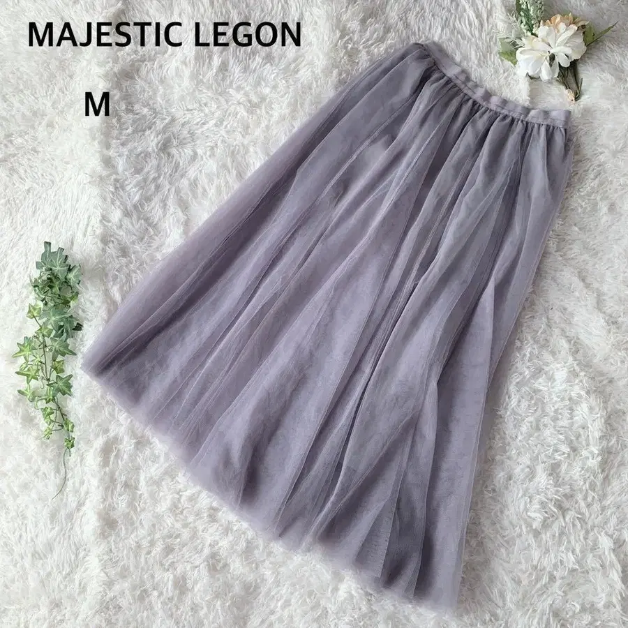 마제스틱 레곤 튤 플레어 스커트 롱 허리밴딩 페미닌
