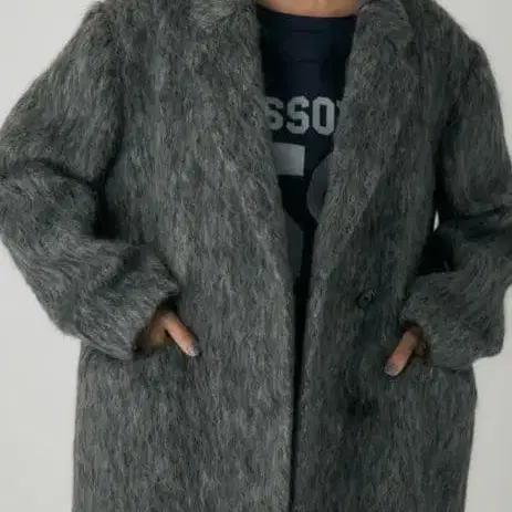 미사용 택 포함 밤 네이비 샤기 패디드 숄더 코트
