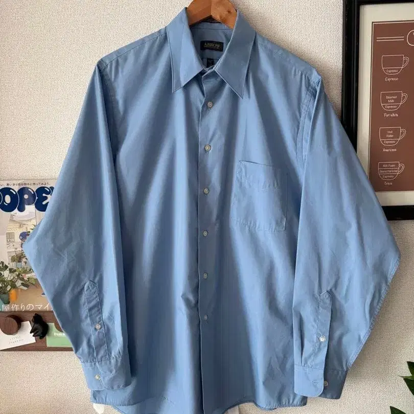 ARROW 긴팔 셔츠 스카이블루 가슴 포켓 부착 USA