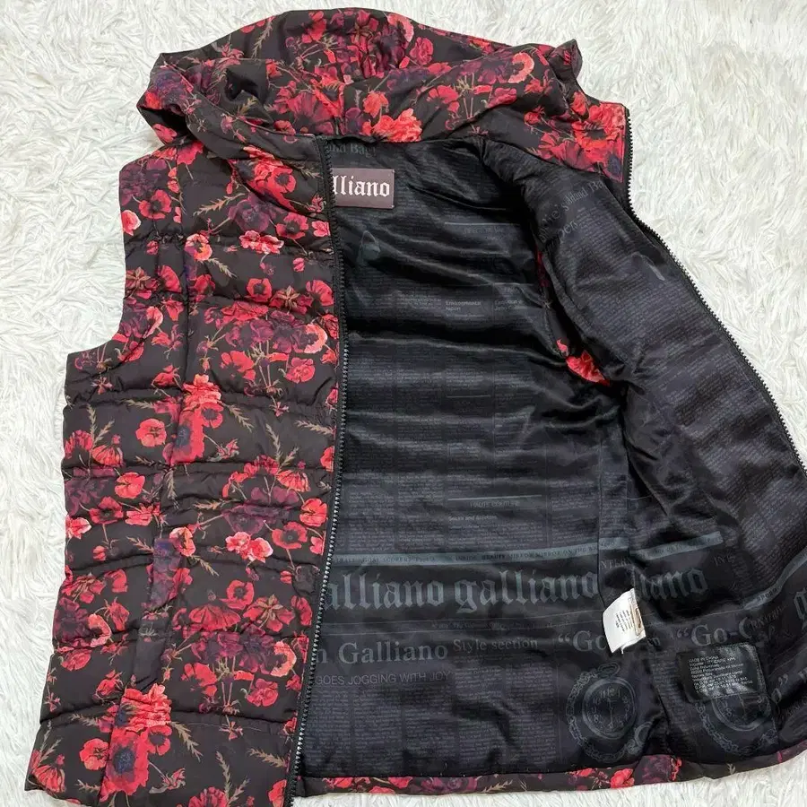 레어 새상품급 존 갈리아노 꽃무늬 다운 베스트 안쪽 뉴스 페이퍼 패턴