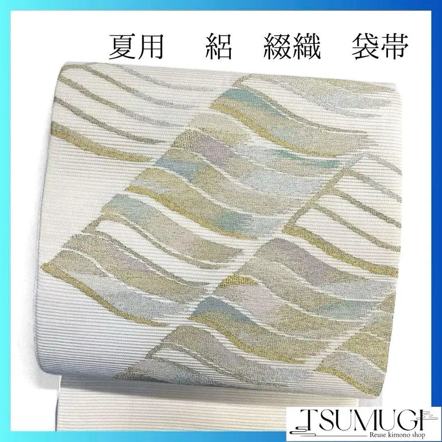 여름용 명주 츠즈레오리 류센 카스리 후쿠로 오비 기모노 041a p