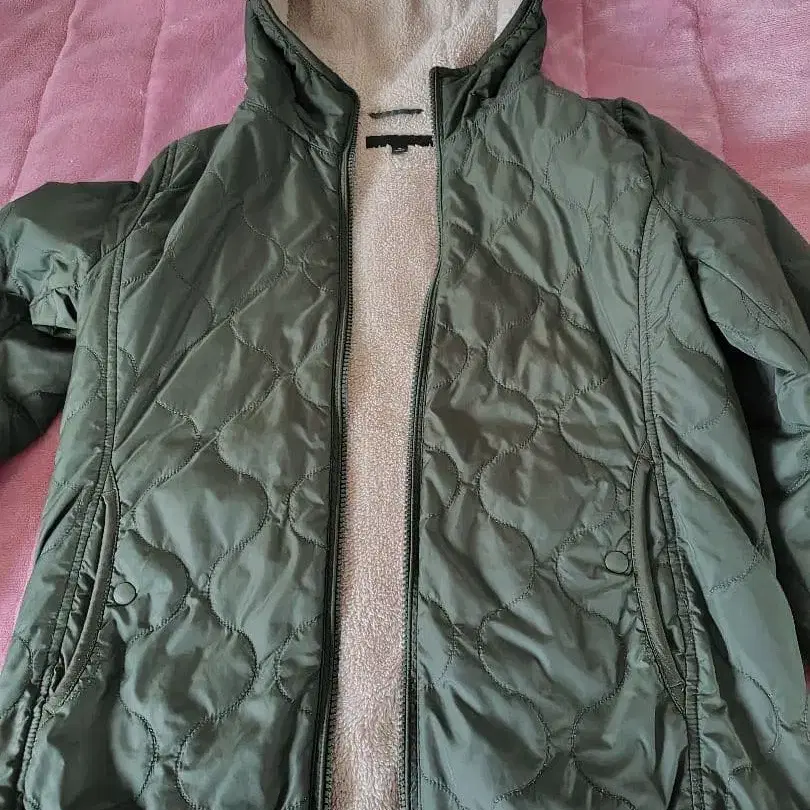 유니클로 올리브 그린 보아 후드 부착 퀼팅 자켓 M