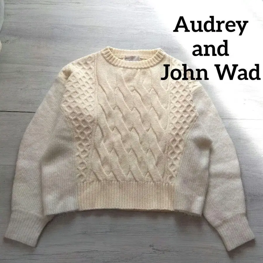 [오드리앤존와드] 케이블 니트 드롭 숄더 바이컬러