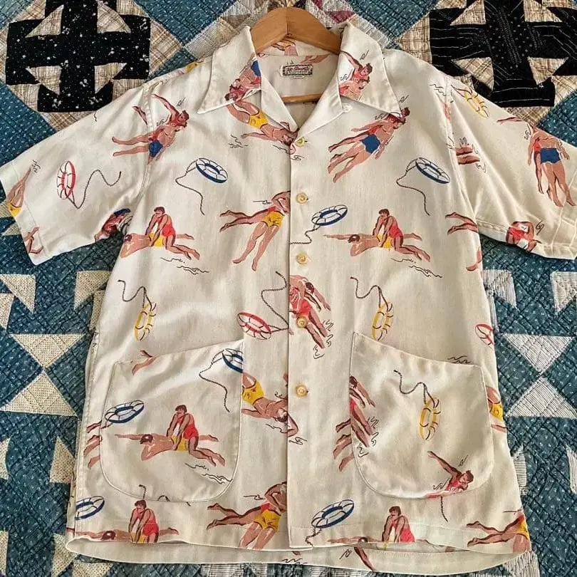 오리지널 40s 빈티지 McGREGOR 오픈 카라 LIFE GUARD