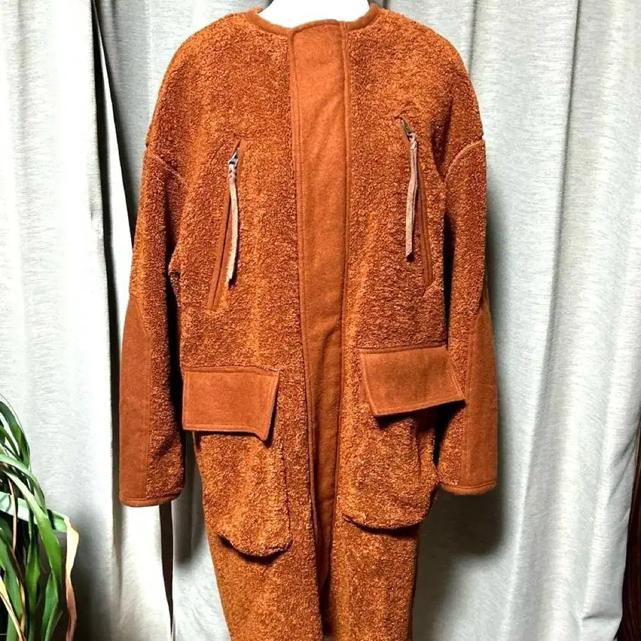 R.N.A 브라운 플리스 자켓 롱 기장 앞 척&